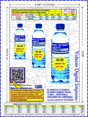 1.- te puedo suministrar el agua embotellada con la etiqueta personificada.